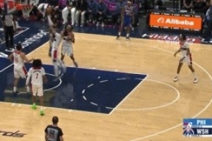 低级失误!海斯长传球被断 华盛顿反击暴扣打停湖人