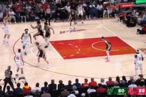 低级失误!海斯长传球被断 华盛顿反击暴扣打停湖人
