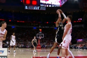 摧枯拉朽!詹姆斯送妙传 海斯起飞力压鲍威尔隔扣打成2+1