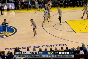 奥科吉扑防赛斯·库里被吹三分犯规 乌度卡果断挑战但以失败告终