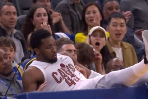 突然就倒了!米切尔“晃倒”米卡·波特&科比·布朗 轻松压哨抛投