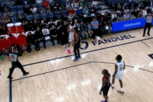 百步穿杨!杰伦·布朗持球单打 横撤步躲闪防守漂移三分压哨命中