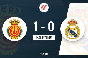 体育资讯4月4日讯 北京时间4月4日22时15分,西甲第30轮,皇马做客伊比利亚之星球场对阵马略卡。上半场双方均无建树,姆巴佩错失单刀良机,马略卡门将罗曼作出多次关键扑救,随后莫拉内斯破门首开纪录。半场战罢,皇马暂0-1马略卡。