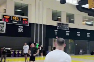 想下班了?波尔津吉斯篮板球对杜兰特犯规 下半场3分半已经4犯规